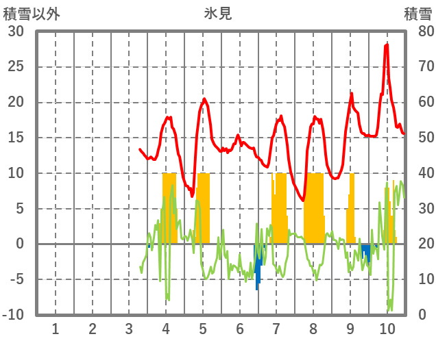 | 日 | 時 | 気温 | 降水 | 風向/風速 | 日照 | 積雪 | 降雪 |