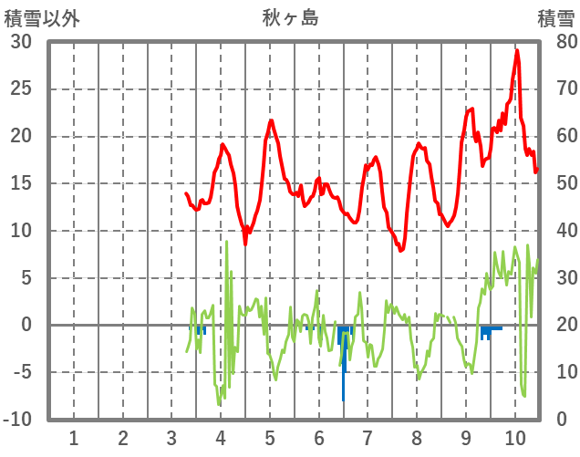 | 日 | 時 | 気温 | 降水 | 風向/風速 | 日照 | 積雪 | 降雪 |