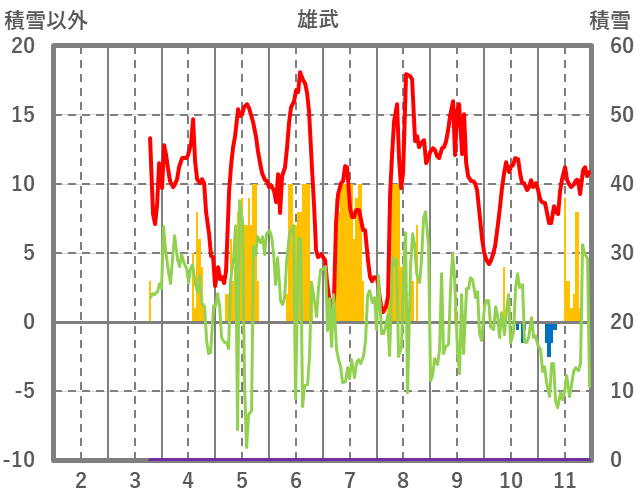 | 日 | 時 | 気温 | 降水 | 風向/風速 | 日照 | 積雪 | 降雪 |