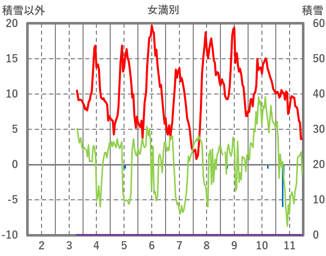 | 日 | 時 | 気温 | 降水 | 風向/風速 | 日照 | 積雪 | 降雪 |