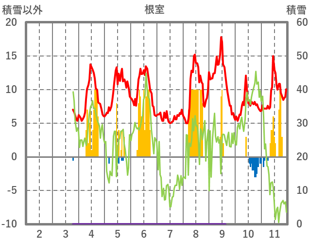 | 日 | 時 | 気温 | 降水 | 風向/風速 | 日照 | 積雪 | 降雪 |