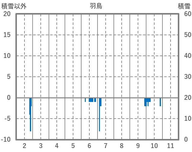 | 日 | 時 | 気温 | 降水 | 風向/風速 | 日照 | 積雪 | 降雪 |