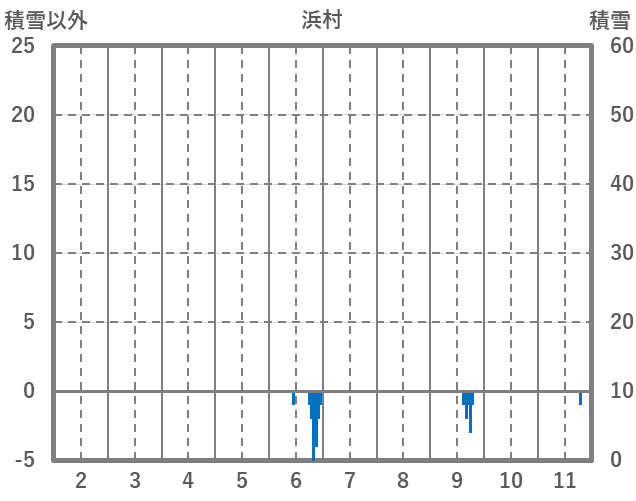 | 日 | 時 | 気温 | 降水 | 風向/風速 | 日照 | 積雪 | 降雪 |