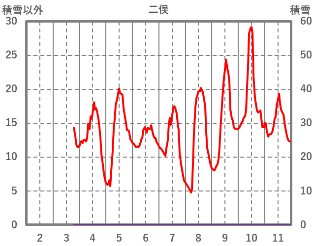 | 日 | 時 | 気温 | 降水 | 風向/風速 | 日照 | 積雪 | 降雪 |