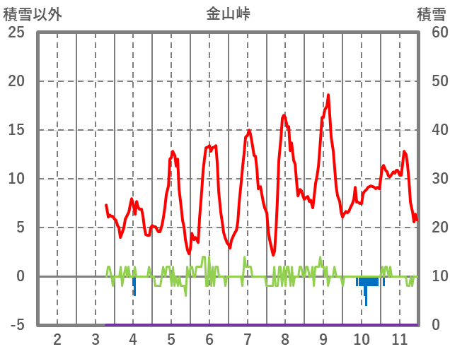 | 日 | 時 | 気温 | 降水 | 風向/風速 | 日照 | 積雪 | 降雪 |