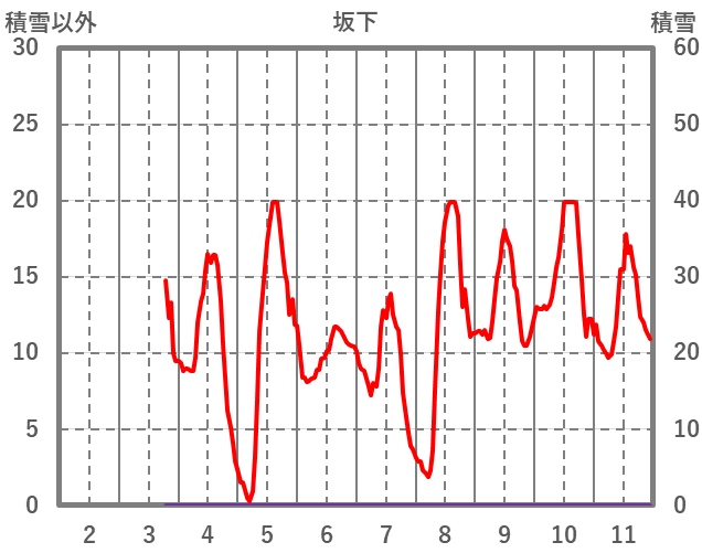 | 日 | 時 | 気温 | 降水 | 風向/風速 | 日照 | 積雪 | 降雪 |