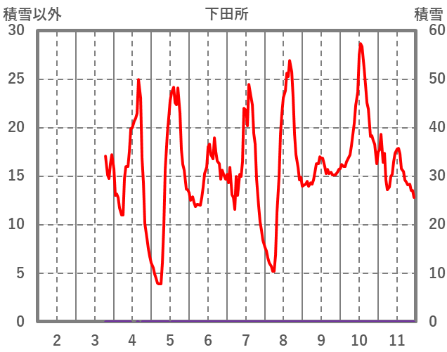 | 日 | 時 | 気温 | 降水 | 風向/風速 | 日照 | 積雪 | 降雪 |