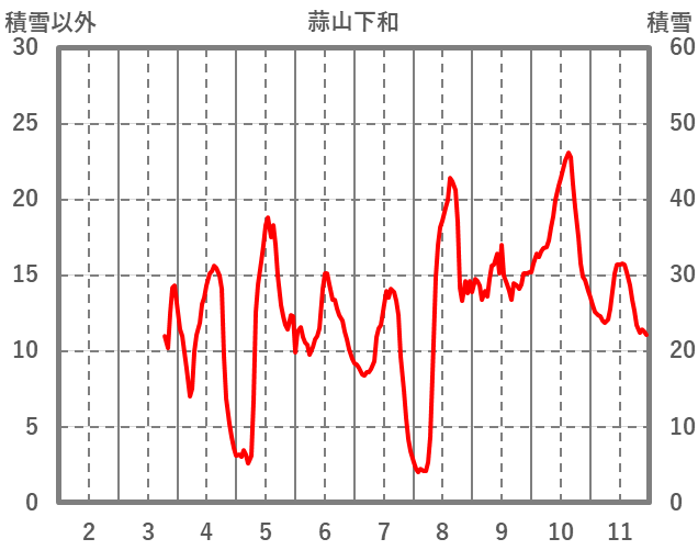 | 日 | 時 | 気温 | 降水 | 風向/風速 | 日照 | 積雪 | 降雪 |