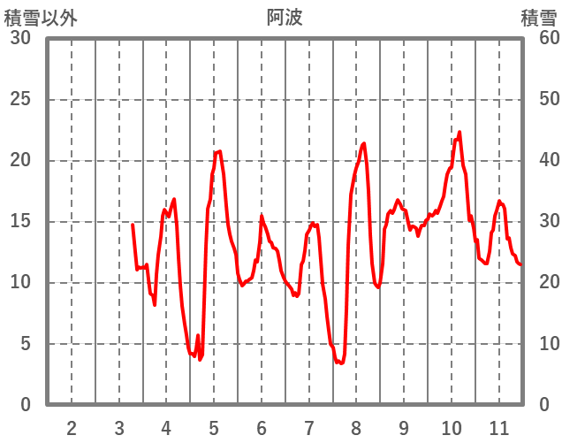 | 日 | 時 | 気温 | 降水 | 風向/風速 | 日照 | 積雪 | 降雪 |