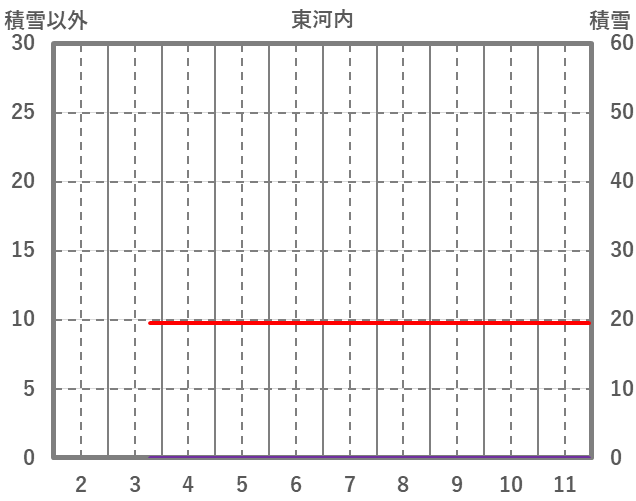 | 日 | 時 | 気温 | 降水 | 風向/風速 | 日照 | 積雪 | 降雪 |