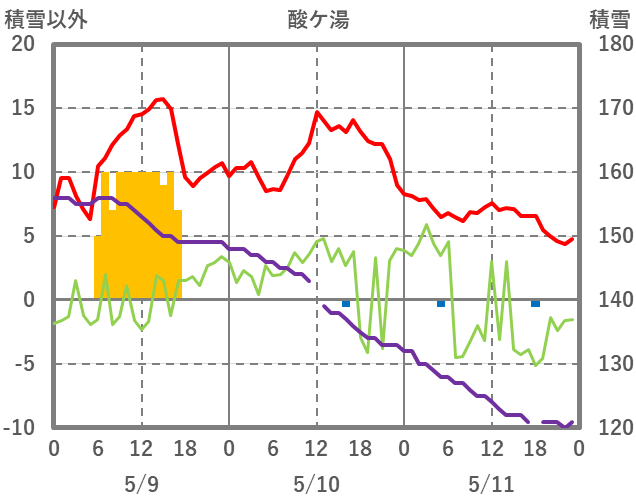 | 日 | 時 | 気温 | 降水 | 風向/風速 | 日照 | 積雪 | 降雪 |