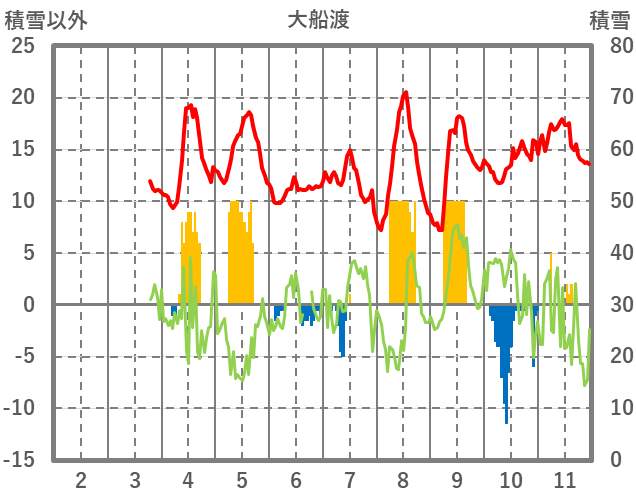| 日 | 時 | 気温 | 降水 | 風向/風速 | 日照 | 積雪 | 降雪 |
