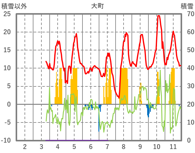 | 日 | 時 | 気温 | 降水 | 風向/風速 | 日照 | 積雪 | 降雪 |