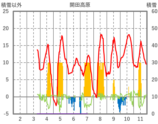 | 日 | 時 | 気温 | 降水 | 風向/風速 | 日照 | 積雪 | 降雪 |