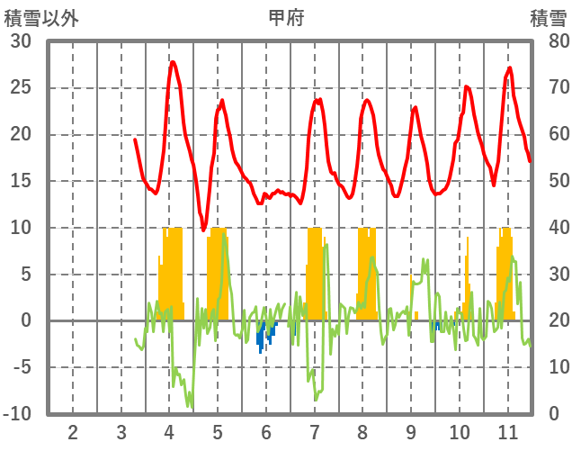 | 日 | 時 | 気温 | 降水 | 風向/風速 | 日照 | 積雪 | 降雪 |