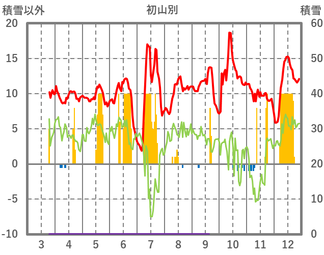 | 日 | 時 | 気温 | 降水 | 風向/風速 | 日照 | 積雪 | 降雪 |