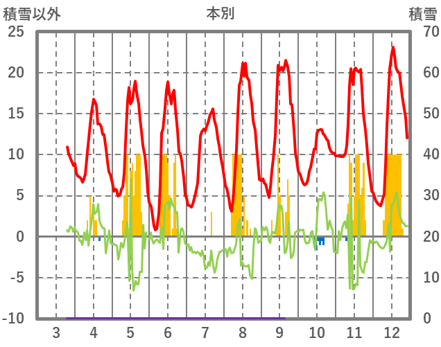 | 日 | 時 | 気温 | 降水 | 風向/風速 | 日照 | 積雪 | 降雪 |