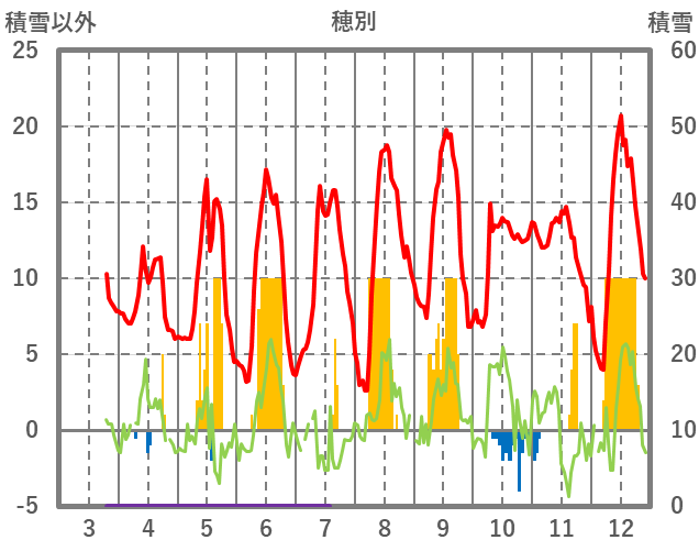 | 日 | 時 | 気温 | 降水 | 風向/風速 | 日照 | 積雪 | 降雪 |