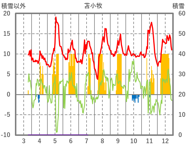 | 日 | 時 | 気温 | 降水 | 風向/風速 | 日照 | 積雪 | 降雪 |