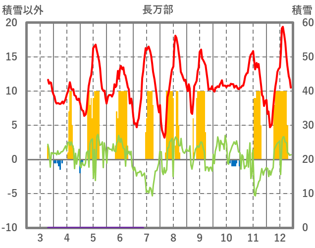 | 日 | 時 | 気温 | 降水 | 風向/風速 | 日照 | 積雪 | 降雪 |