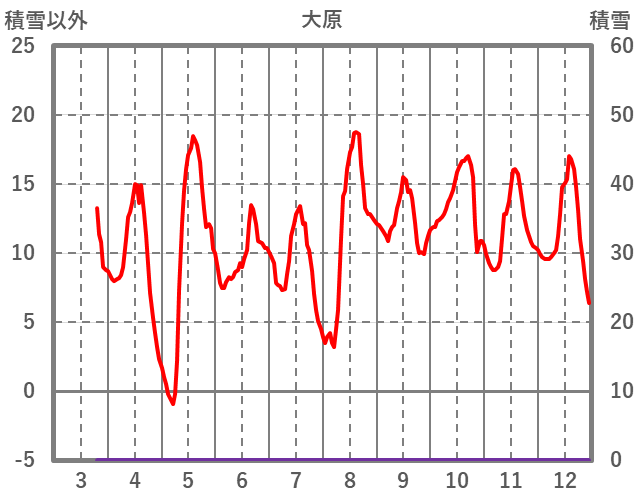 | 日 | 時 | 気温 | 降水 | 風向/風速 | 日照 | 積雪 | 降雪 |