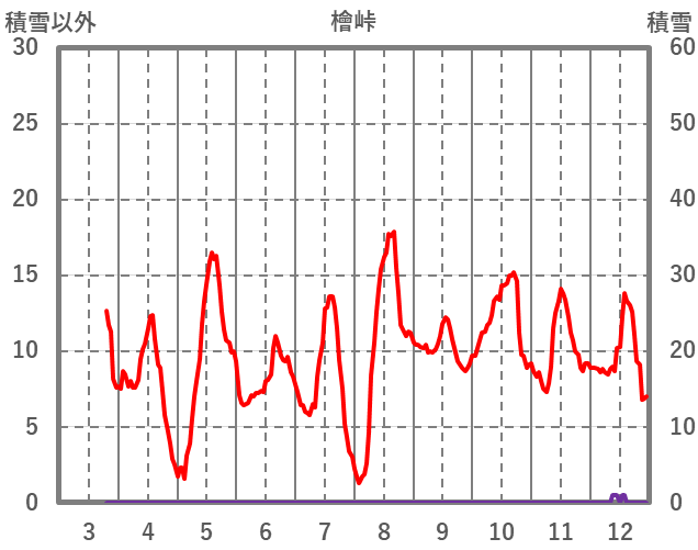 | 日 | 時 | 気温 | 降水 | 風向/風速 | 日照 | 積雪 | 降雪 |