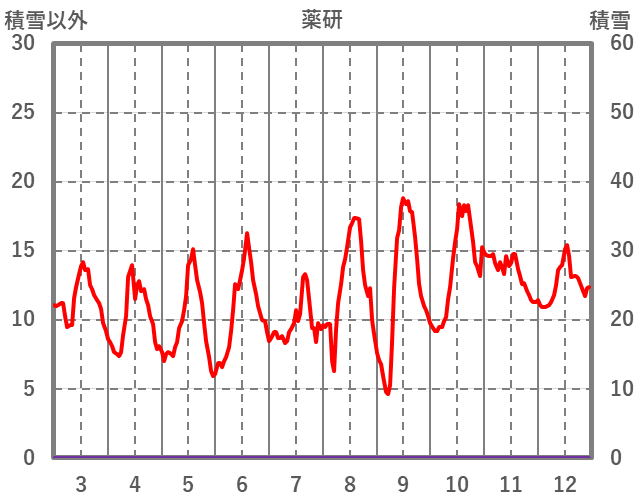 | 日 | 時 | 気温 | 降水 | 風向/風速 | 日照 | 積雪 | 降雪 |