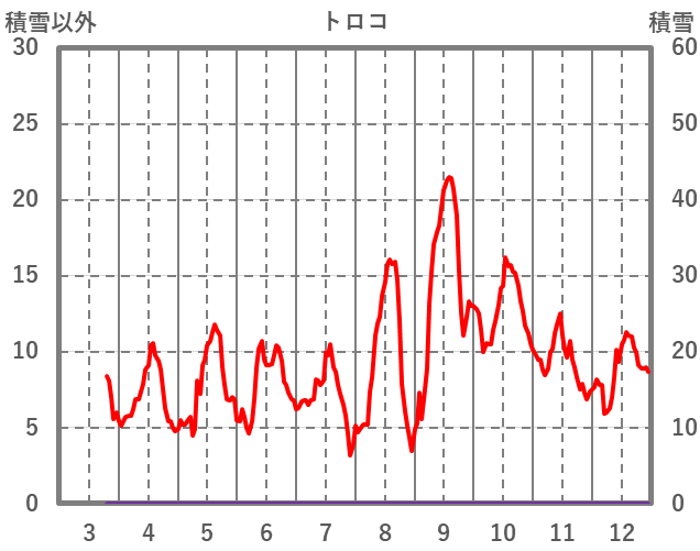 | 日 | 時 | 気温 | 降水 | 風向/風速 | 日照 | 積雪 | 降雪 |