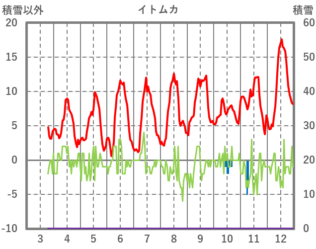 | 日 | 時 | 気温 | 降水 | 風向/風速 | 日照 | 積雪 | 降雪 |