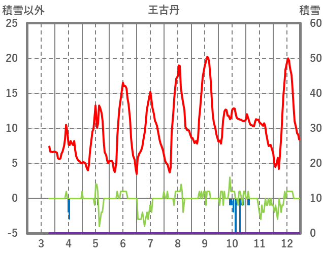 | 日 | 時 | 気温 | 降水 | 風向/風速 | 日照 | 積雪 | 降雪 |