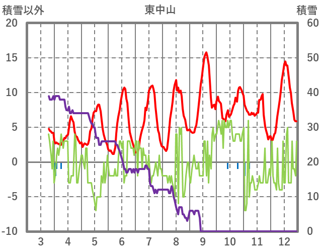 | 日 | 時 | 気温 | 降水 | 風向/風速 | 日照 | 積雪 | 降雪 |