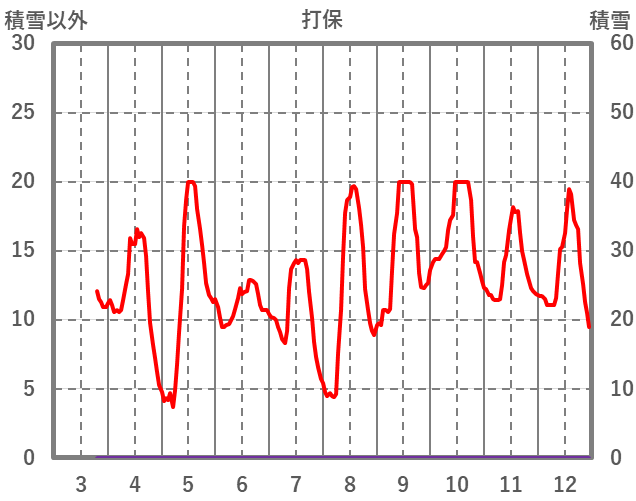 | 日 | 時 | 気温 | 降水 | 風向/風速 | 日照 | 積雪 | 降雪 |
