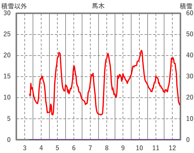 | 日 | 時 | 気温 | 降水 | 風向/風速 | 日照 | 積雪 | 降雪 |
