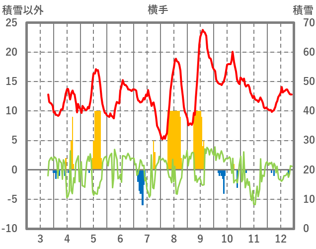 | 日 | 時 | 気温 | 降水 | 風向/風速 | 日照 | 積雪 | 降雪 |