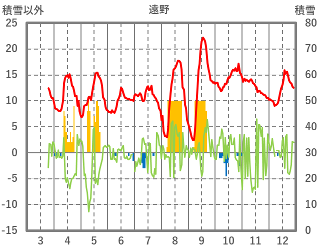 | 日 | 時 | 気温 | 降水 | 風向/風速 | 日照 | 積雪 | 降雪 |