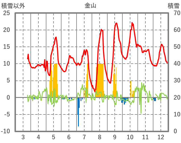 | 日 | 時 | 気温 | 降水 | 風向/風速 | 日照 | 積雪 | 降雪 |