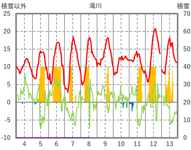 | 日 | 時 | 気温 | 降水 | 風向/風速 | 日照 | 積雪 | 降雪 |