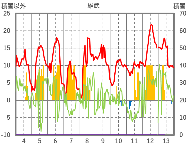 | 日 | 時 | 気温 | 降水 | 風向/風速 | 日照 | 積雪 | 降雪 |