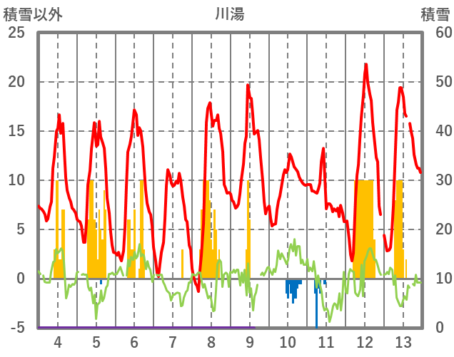 | 日 | 時 | 気温 | 降水 | 風向/風速 | 日照 | 積雪 | 降雪 |