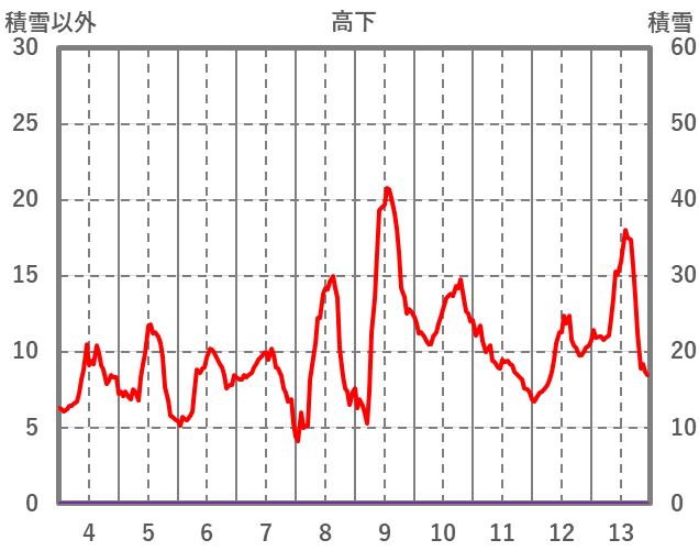| 日 | 時 | 気温 | 降水 | 風向/風速 | 日照 | 積雪 | 降雪 |