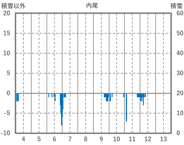 | 日 | 時 | 気温 | 降水 | 風向/風速 | 日照 | 積雪 | 降雪 |