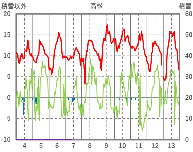| 日 | 時 | 気温 | 降水 | 風向/風速 | 日照 | 積雪 | 降雪 |
