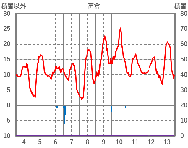 | 日 | 時 | 気温 | 降水 | 風向/風速 | 日照 | 積雪 | 降雪 |