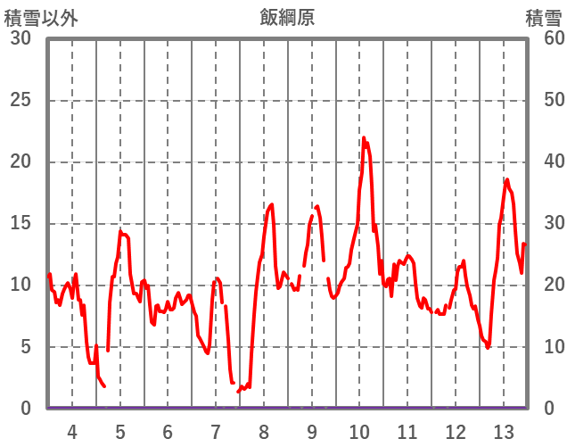 | 日 | 時 | 気温 | 降水 | 風向/風速 | 日照 | 積雪 | 降雪 |