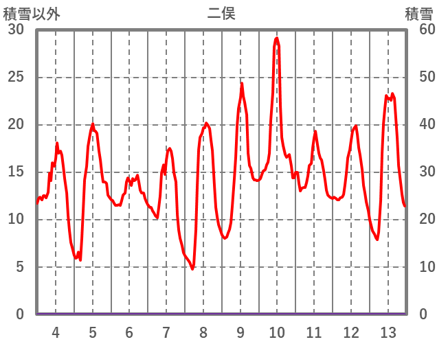 | 日 | 時 | 気温 | 降水 | 風向/風速 | 日照 | 積雪 | 降雪 |