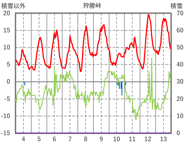 | 日 | 時 | 気温 | 降水 | 風向/風速 | 日照 | 積雪 | 降雪 |