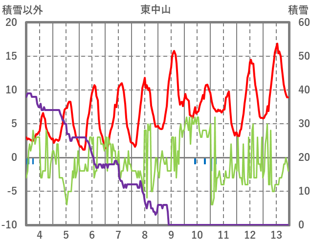 | 日 | 時 | 気温 | 降水 | 風向/風速 | 日照 | 積雪 | 降雪 |