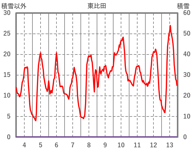| 日 | 時 | 気温 | 降水 | 風向/風速 | 日照 | 積雪 | 降雪 |