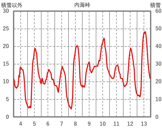 | 日 | 時 | 気温 | 降水 | 風向/風速 | 日照 | 積雪 | 降雪 |