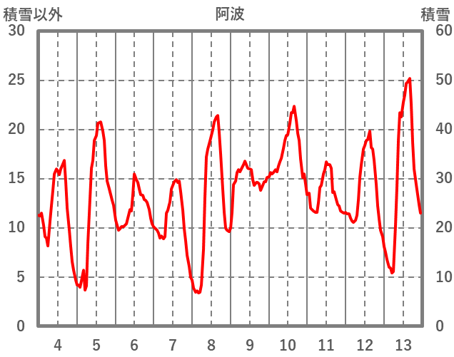 | 日 | 時 | 気温 | 降水 | 風向/風速 | 日照 | 積雪 | 降雪 |
